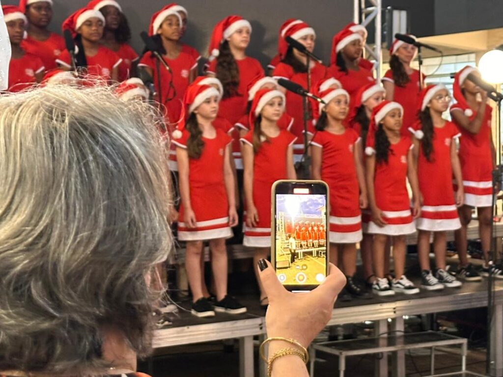 Com vozes afinadas e muita desenvoltura no palco, as crianças transmitiram a verdadeira essência do período: alegria, união e esperança. Cada música arrancou sorrisos da plateia, que acompanhou atenta e emocionada. O brilho nos olhos dos pequenos artistas e a delicadeza da apresentação criaram um clima especial, reforçando o espírito natalino que marca o Natal nas Águas 2025.